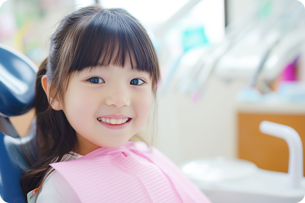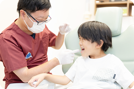 定期的な検診では、むし歯や歯肉炎の早期発見に加え、歯並びや噛み合わせの成長も確認します。問題が見つかった際には適切な時期に治療や予防策をご提案し、健康な口腔環境の維持をサポートします。