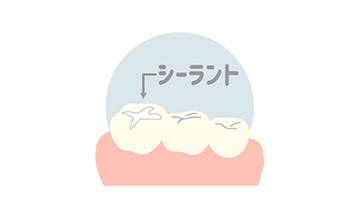 奥歯の溝はむし歯になりやすい部分です。シーラントはその溝を歯科用の樹脂で埋め、食べかすや細菌が入り込むのを防ぐ処置です。痛みを伴わず短時間で行えるため、小さなお子さんのむし歯予防に有効な方法とされています。